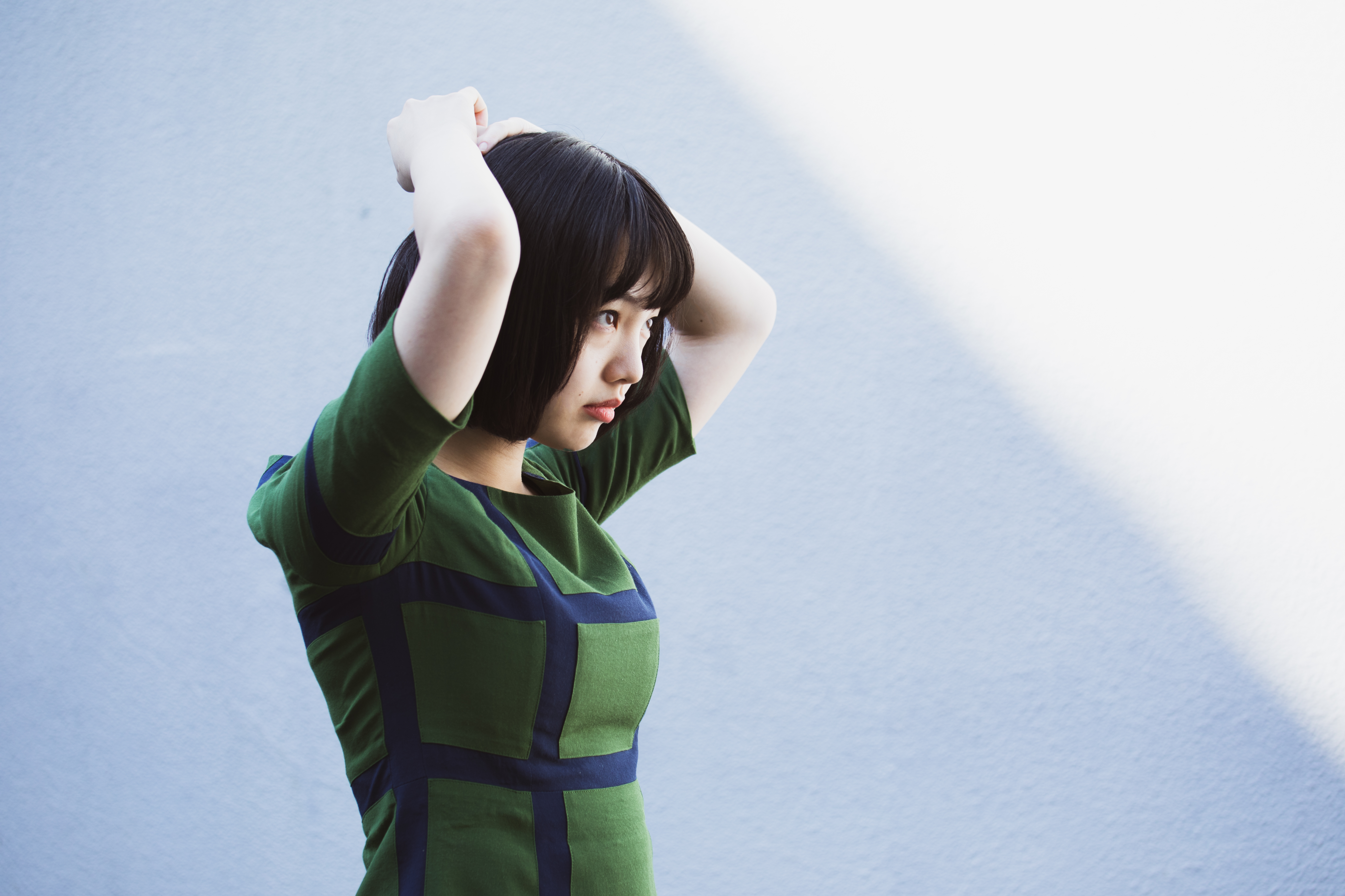 モデルのお仕事をする前は宣材写真しか撮ったことが無かったんですけど、宣材写真って、結局自分自身じゃないですか。自分ってよくわからないな…って思っていたので、宣材写真の撮影はすごく苦手だったんですけど、動いてもよしとしてくれる写真のお仕事は、映像とあまり変わらないんですよね。メイクと洋服が決まっている状態から、いろいろ構築していくことが面白くて。映像のお芝居でも、衣装を着ることによって役が掴めたり、スイッチが入ったりすることがありますし、「この役は、こういう服を着てるよね」というように、役への理解が深まることもあります。